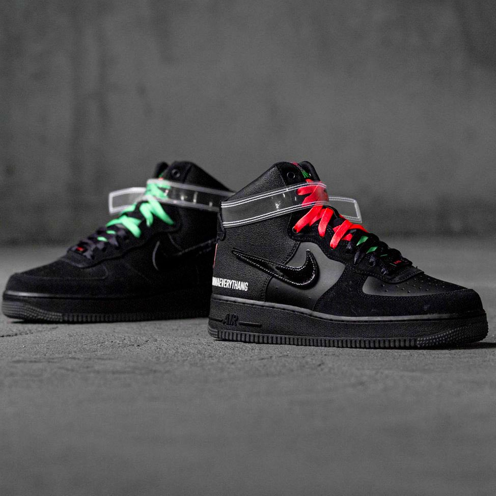 The Nike Air Force 1 All For 1 - Los Angeles is a collaboration with artist Lauren Halsey that remixes the Triple Black High into an ode to LA, celebrating the ones who cultivate community through creativity. Lauren’s signature style funkatizes the insole with a kaleidoscope of visuals, adorned in red and green accents, interchangeable straps, and inscribed with words of love.